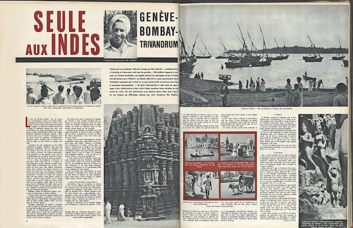 Ella Maillart publie notamment dans «L’illustré» des reportages, avec ses images, sur l’Inde en 1951, comme «Seule aux Indes. Genève-Bombay-Trivandrum».