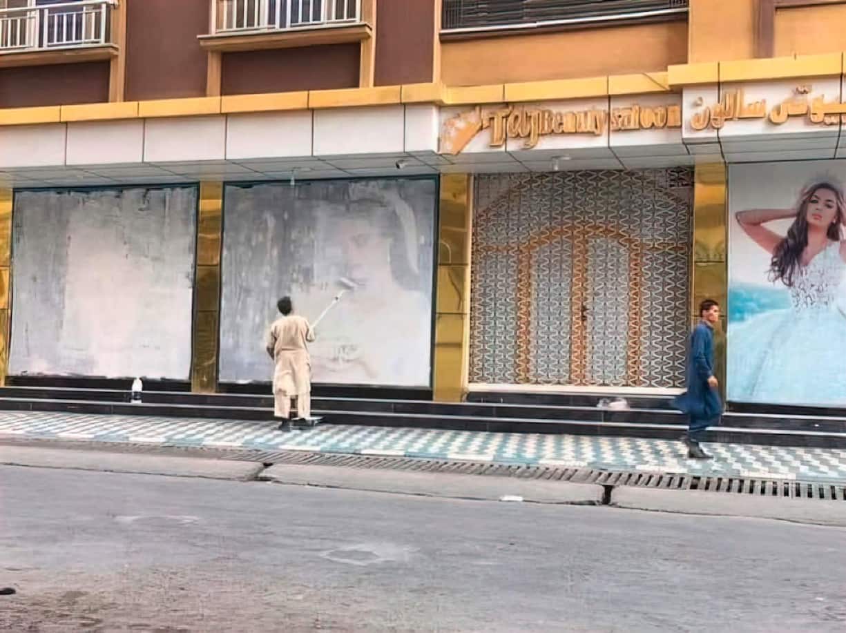 Lundi 16 août. Comme un air de déjà-vu, les visages de femmes et les publicités dans la rue sont recouverts.