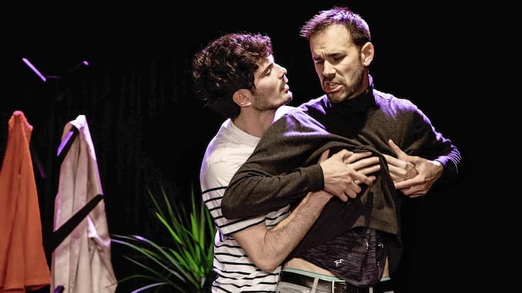 Dix scènes jouées par trois comédiens: Nathan Pannatier (à gauche), Olivier Giroud (à droite) et Mélanie Freymond.