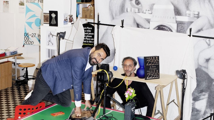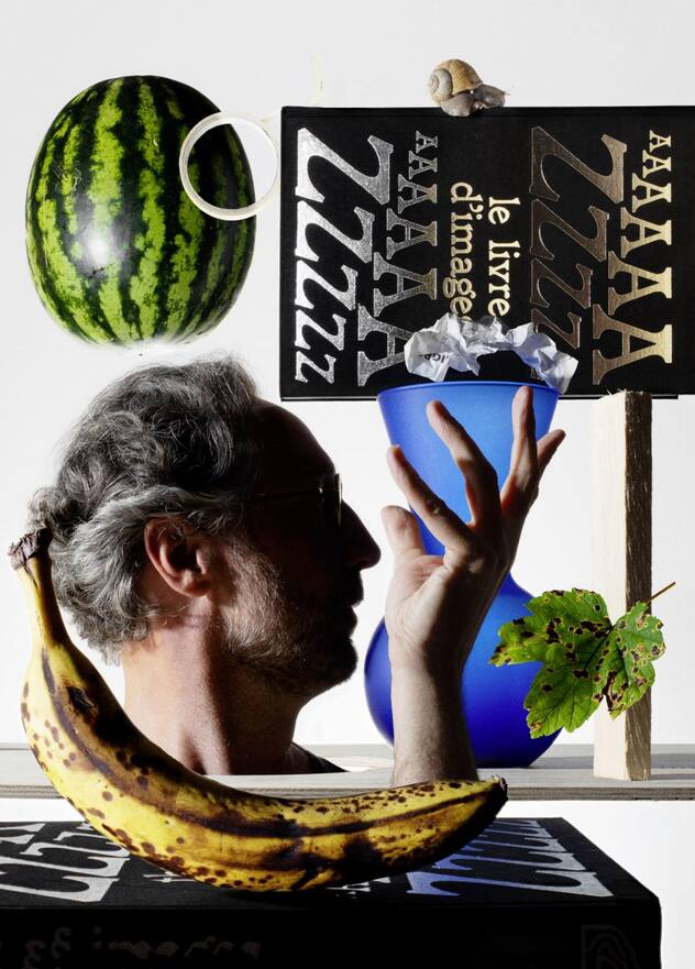 Stefano Stoll photographié pour «L’illustré» par Nicolas Polli, également graphiste basé à Bienne (Swiss Design Award en 2018 et 2020). L’auteur de la photo «aime réaliser des images de natures mortes assez élaborées, avec une connotation punk».