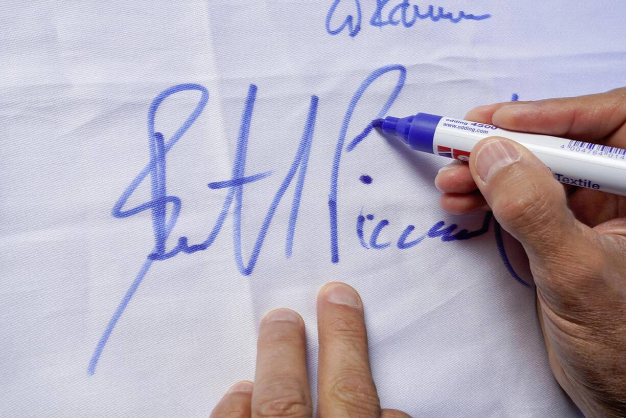 La discussion est restée courtoise et leurs trois signatures (ici celle de Bertrand Piccard) se côtoieront sur la nappe souvenir de ces tables romandes intercantonales.