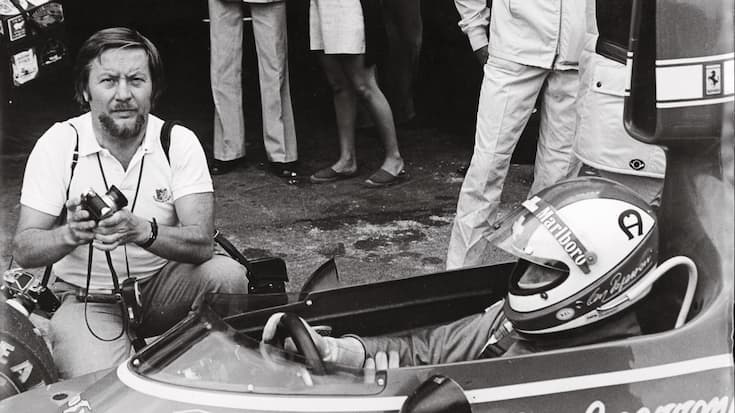 Yves Debraine au côté de Clay Regazzoni dans les années 1970. Le photographe a couvert le Championnat du monde de formule 1 pendant une bonne vingtaine d’années, dès 1952. Il avait créé cette année-là le périodique «L’année automobile» avec l’éditeur Ami Guichard.