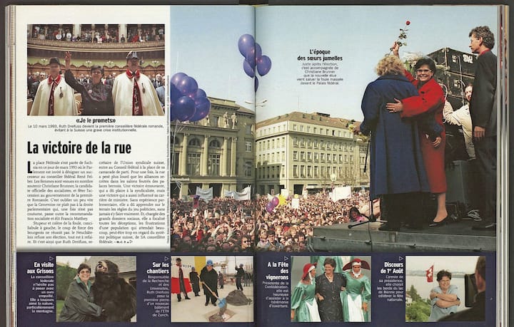 «La victoire de la rue»: en 2002, lorsque Ruth Dreifuss annonce son retrait, «L’illustré» revient sur son élection de 1993, lors de laquelle elle avait salué la foule avec Christiane Brunner.